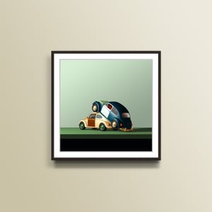 Volkswagen Beetle art. Quite a 'sexy' piece of art this one, so perhaps suitable for the bedroom. :) A take on the mating habits of the insect version of this iconic vehicle.